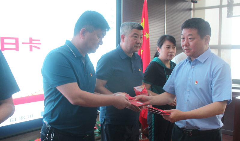 授课完毕后,包河区委统战部副部长、区工商联党组书记史道云和国信集团党支部书记、董事长周先玉为国信集团党支部全体党员颁发党员政治生日卡。芜湖路街道商会会长兼支部书记、安徽三环科技发展集团董事长金棕,大圩镇商会会长、安徽海轩教育科技有限公司董事长吴群学,安徽合普项目管理咨询有限公司党支部书记崔永华,深圳恒源昊信息科技有限公司党支部书记田志勇,同安街道商会会长、安徽中国青年旅行社有限责任公司董事长张剑等与会人员,围绕“学党史、强信念、跟党走”主题,结合党史宣讲学习等内容谈体会、话感受、表决心,大家结合自身工作和学习实际,畅谈如何学党史并交流分享学习后的心得体会和奋进方向。