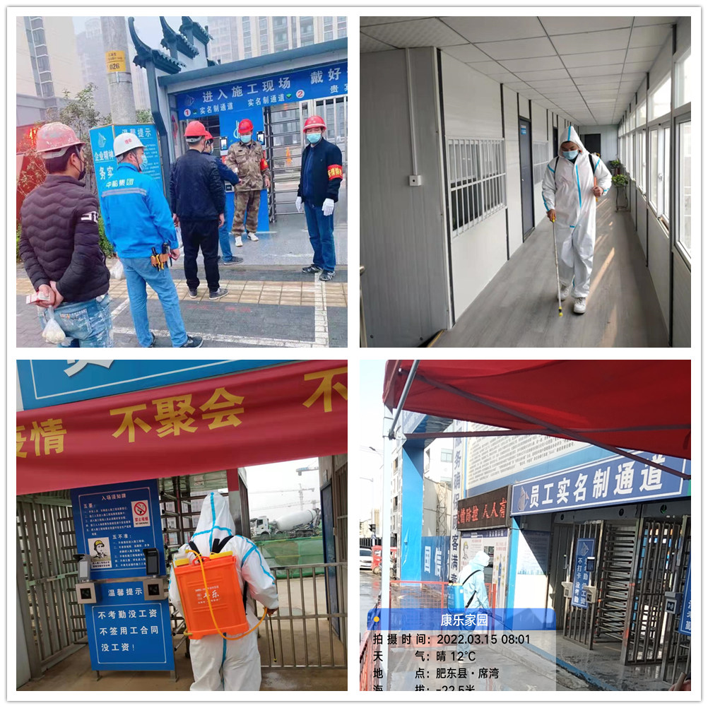 此外,为切实做好疫情防控工作,各项目部从大局着眼,从细微入手,不断加强对全体职工的疫情防控安全教育,开展多种形式的防疫知识宣传,不断增强员工安全防范意识,全力营造疫情防控良好秩序。进一步严格落实实名制管理制度,对进入施工现场的人员进行信息登记、测温、查验健康码、建立登记台账。加大疫情防控物品储备,为全体职工配发防疫物资,对办公区、生活区、施工区、就餐区等人员密集场所实行全面消杀和通风处理。