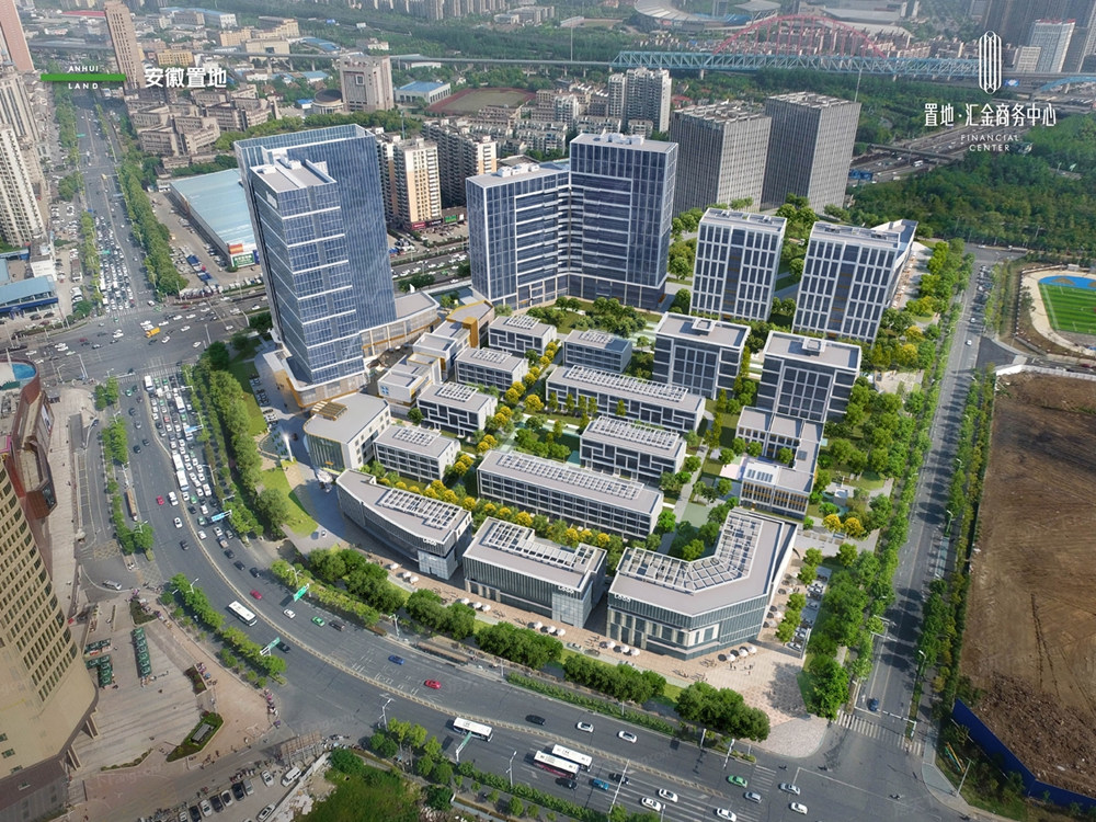 汇金商务中心项目位于合肥市经开区,北靠青翠路,东至莲花路,西至金寨路,南至芙蓉路,总建筑面积约 20.2 万平米,其中地上建筑面积约14.8 万平米,地下室面积约 5.4 万平米。建设内容为新建南侧集中办公(A 座办公楼)、北侧集中办公(B、C 座办公楼)、商务办公(B1-B9)、商业及相关配套服务设施等工程(包括幼儿园)。其中A 座办公楼建筑面积约5万平米,地上25层,建筑高度99.2米,采用装配整体式混凝土框架-剪力墙结构,装配率不低于 50%。