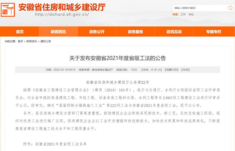 3月15日,安徽省住房和城乡建设厅发布了安徽省2021年度省级工法名单,由国信集团编制申报的《邻桩套扣连接钢管桩施工工法》《基于轨迹曲线设计优与短管接口承插咬合技术融合拉顶管施工工法》被省住建厅审定为安徽省2021年度省级工法。两项工法均是公司总结多年实践经验而成,经多个工程项目运用取得了较好的经济效益和社会效益。