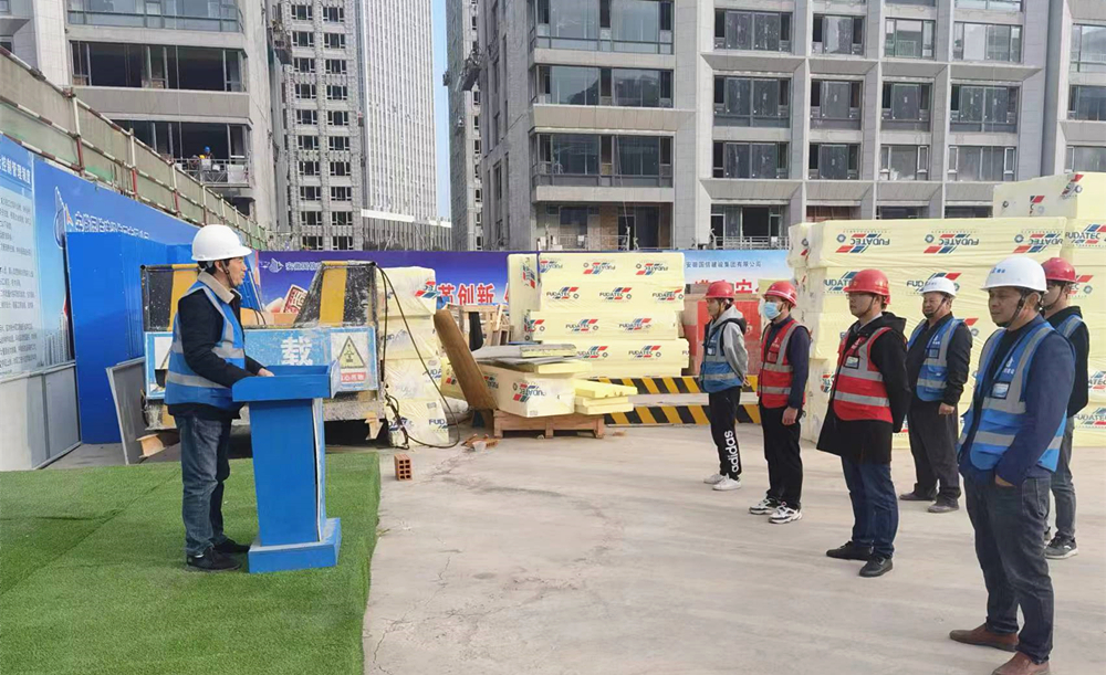 在工地大门口,工友们由班组长带领,在项目部防疫专员、安全员、值班门卫查验过安康码、行程码、核酸报告,经门禁识别后进入到施工现场。安全讲评台前,或工地开阔地带,项目部专职安全员已经到岗,工友们由各班组长召集,根据人数多少,或列成方队,或排成三两行,举行每日班前晨会。班前会开始前,班组长根据花名册对工友师傅们逐一点名,提醒工友检查个人安全防护用品佩戴是否规范,劳动工具是否符合要求,身体状况是否满足工作需要等。接着,班组长或者安全员根据专业不同,分成钢筋工、木工、架子工、塔吊、爬架、水电工等类别,给各工种工友师傅们进行安全注意事项宣讲,宣讲内容根据各班组的施工特点,针对性提出安全施工注意事项,例如高空作业如何保证安全,地下室的有限空间施工注意事项,深基坑作业的安全要点,塔吊等起重作业信号指挥需要注意的事项,以及临边或洞口施工安全等。各班组宣讲完成后,工友师傅们纷纷奔向工作岗位,此时东方的天空已经出现鱼肚白,新的一天已经开始。召开“班前会”、开好“班前会”,是压实安全生产责任的重要举措。这项制度如今已在国信集团各个项目工地全面推进执行,差不多同一时刻,在国信集团的统一部署要求下,所承建的汇金商务中心、肥西柿树岗乡联圩村安置点等全部工地,班前会均如火如荼开展。