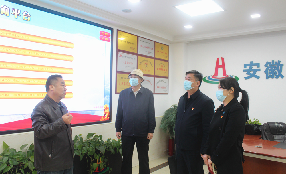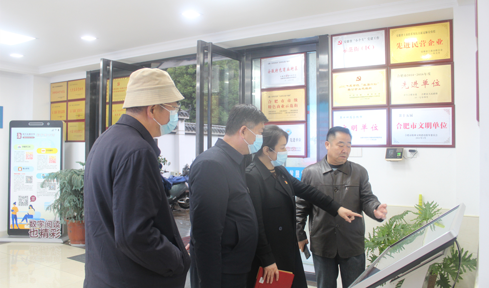 11月29日下午,省法院副厅级审判员、非公党建指导员沈世所,国信集团党支部委员尚红霞、何章龙、李其威等一行来到合肥市芜湖路街道商会党建引领阵地——金水坊文化产业园进行参观交流。金水坊文化产业园由旧厂房改造,建于2015年,园区设立党总支和党员活动中心。产业园党总支坚持以党建引领企业创新发展,先后获得“安徽省特色街区”“合肥市市级示范街区”、合肥市“双强六好”非公企业党组织等荣誉称号。