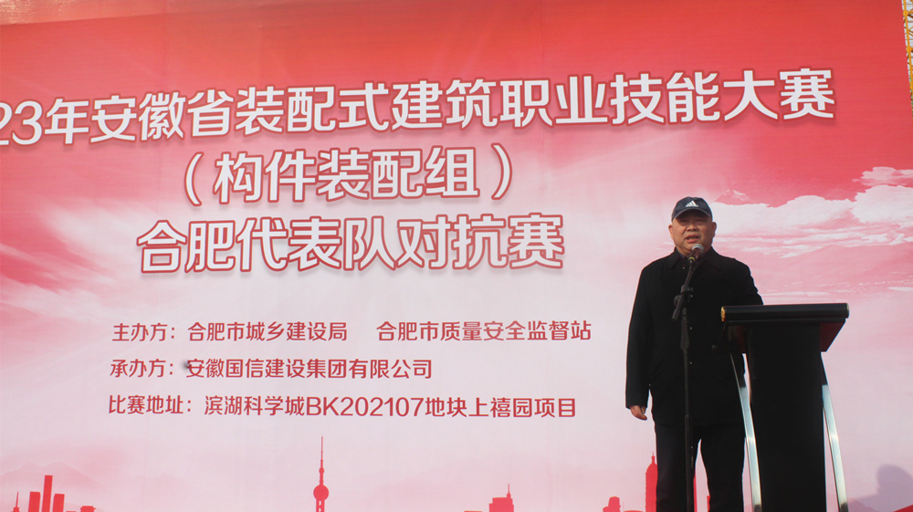 2月21日,由合肥市城乡建设局和合肥市建筑质量安全监督站主办、国信集团承办的安徽省装配式建筑职业技能大赛(构件装配组)合肥代表队对抗赛在国信集团承建的滨湖科学城BK202107地块上禧园项目工地举行。合肥市城乡建设局三级调研员王荣村,合肥市建筑质量安全监督站副站长赵贵生,国信集团总经理何学松以及副总经理邓红兵、马家军,安徽置地合肥公司副总经理赵斌等领导出席活动并观摩实操赛。