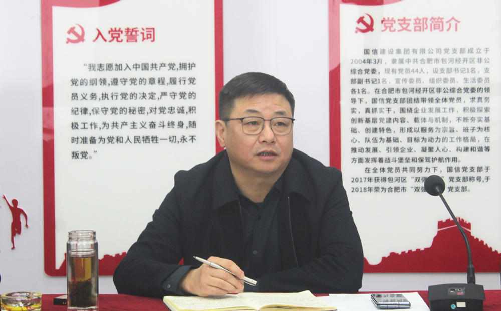 为深入学习贯彻党的二十大精神,进一步加强基层党组织战斗堡垒作用和党员先锋模范作用,提升党员干部队伍凝聚力、战斗力。3月16日下午,安徽国信建设集团有限公司党支部召开2022年度组织生活会,党支部书记、董事长周先玉报告2022年度企业党建工作开展情况,并作表态发言和会议小结,党建指导员、省法院副厅级审判员沈世所对本次组织生活会情况进行点评,和提出要求。党支部副书记、副总经理张官斌主持会议。