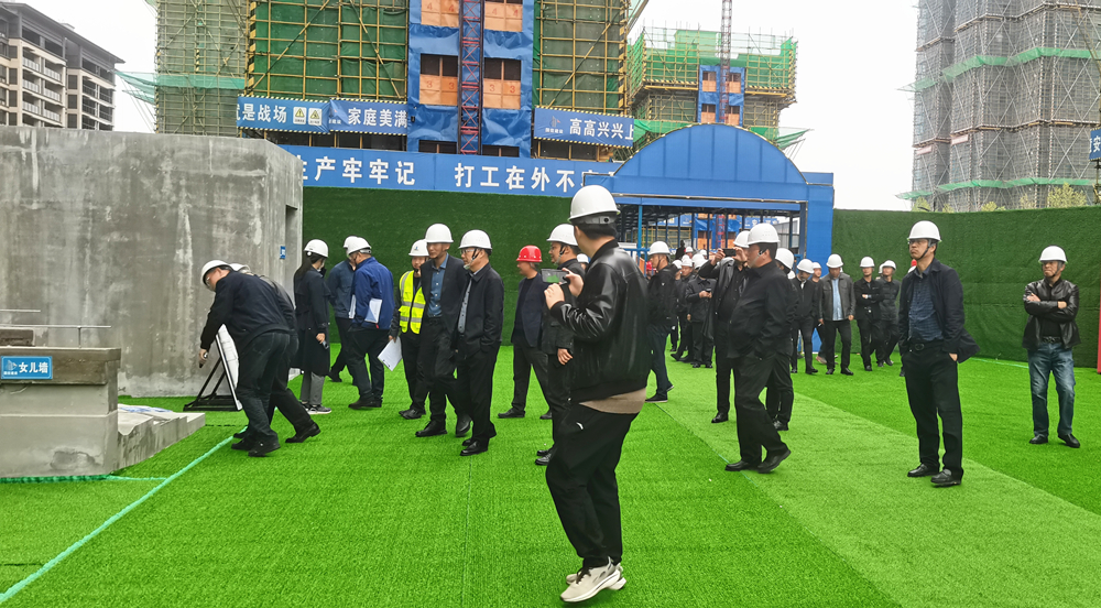 活动现场,与会人员实地参观学习了幸福里II项目的质量样板区、安全体验区、标准化设施建设、绿色建筑施工、智慧工地建设等。项目施工现场整体规划有序,尤其是扬尘防控、安全防治等方面做到了常态化管理。除此之外,各施工作业井然有序进行,每一处细节都有着严谨的施工管理规定,诸多质量安全标准化管理得到了与会人员的一致认可。