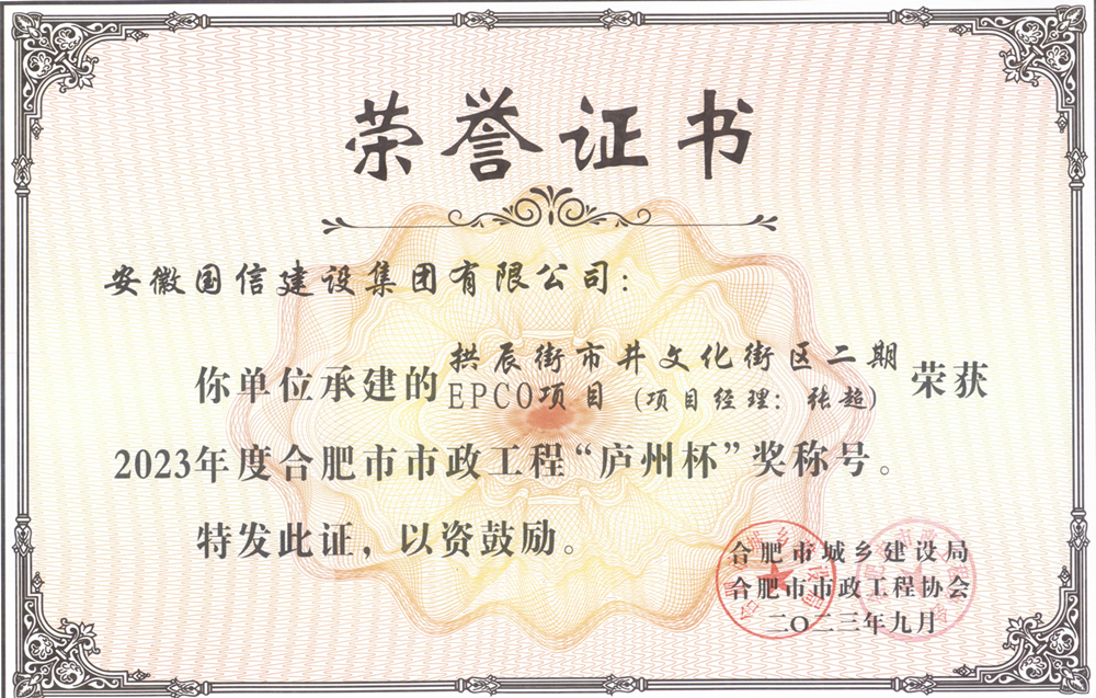 9月6日,合肥市市政工程协会发文公布了2023年度合肥市市政工程“庐州杯”奖获奖项目名单。其中由国信集团承建的拱辰街市井文化街区二期EPCO项目顺利通过评审,榜上有名。