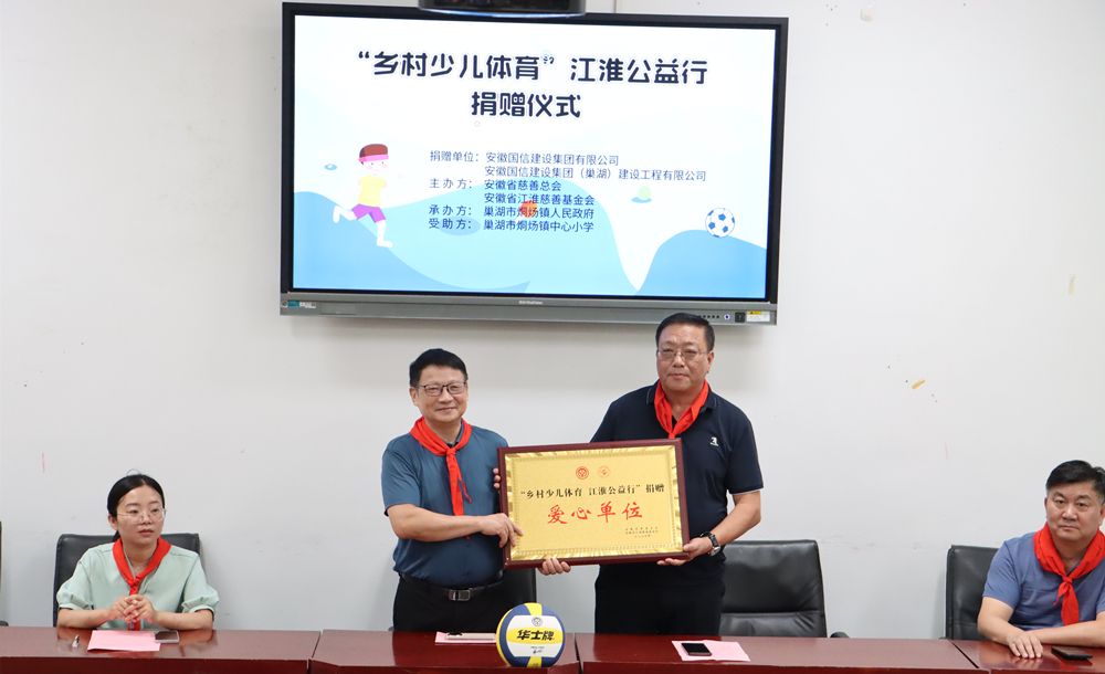 为促进全省乡村义务教育阶段学生及留守、流动儿童健康成长,改善乡村中小学生体育用品的匮乏现状,全面提高少年儿童综合素质,培养造就德、智、体、美、劳全面发展的社会主义建设者和接班人,新学期伊始,国信集团便响应安徽省慈善总会和安徽省江淮慈善基金会的号召,积极参加“乡村少儿体育·江淮公益行”公益活动,向在校学子捐赠体育运动用品。9月3日上午,公益捐赠仪式在巢湖市烔炀镇中心小学举行,国信集团副总经理张官斌、党支部委员何章龙、安徽国信建设集团(巢湖)建设工程有限公司负责人费维麒参加活动。