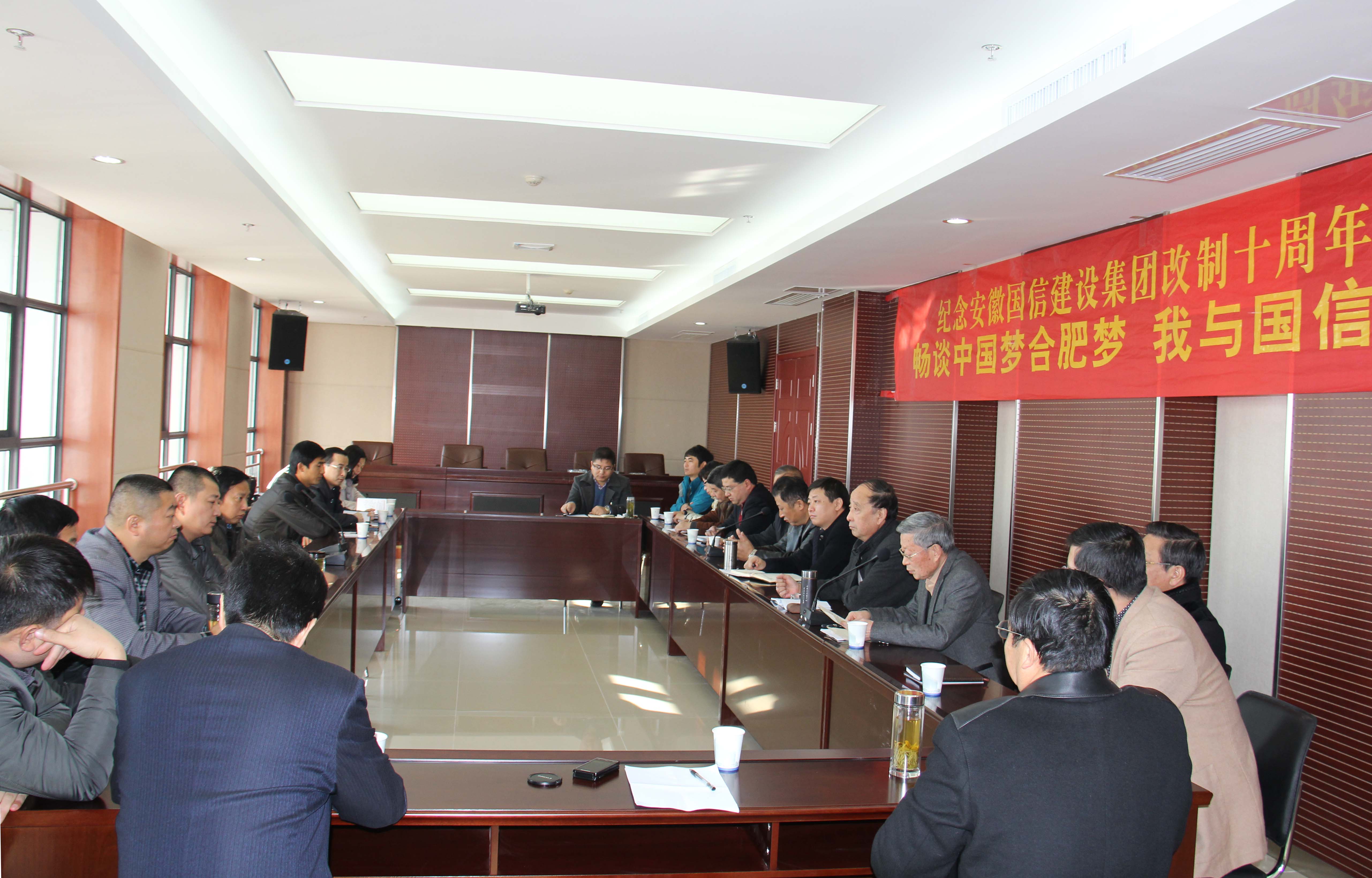 为纪念成功改制十周年,回顾过去,国信建设集团公司于11月29日,在新办公楼会议室举办“畅谈中国梦合肥梦、我与国信梦”座谈会,国信建设集团公司部门负责人、子公司负责人、部分优秀项目经理等参加了座谈会。