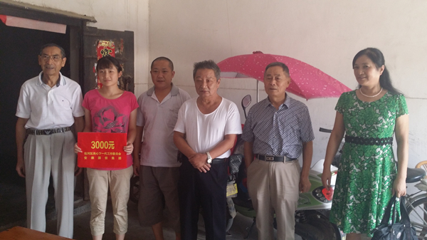 包河区关工委领导(左一、左四、左五)将国信助学款送到贫困学生手中