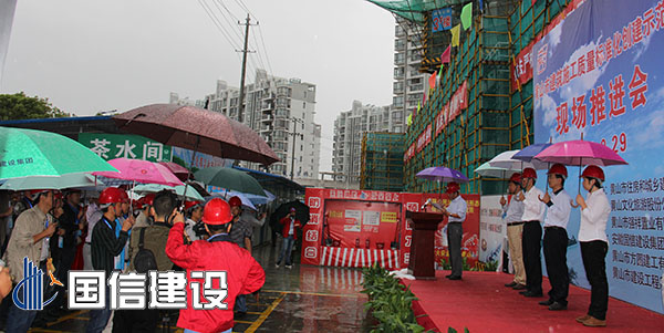 黄山市建委主任刘幸华在讲话中指出,黄山市建委此次组织观摩会到国信集团黄山栢悦公馆工地参观学习,旨在通过示范引路,学习借鉴示范工程的好经验、好措施、好成果,迅速掀起黄山市创建施工质量标准化工程的热潮,以标准化促工程优质化,强化施工质量管理,提高工程质量的整体水平,推进我市标准示范工程创建工作。