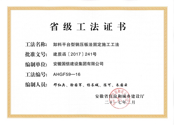 省级工法:卸料平台型钢压板法固定施工工法
