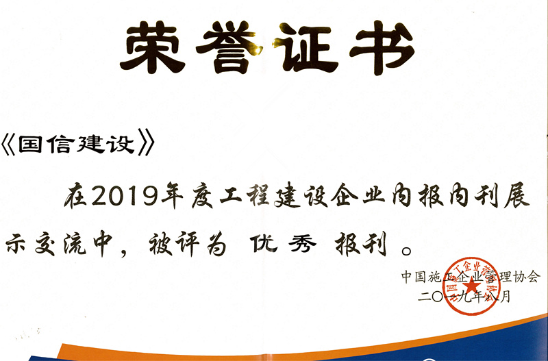 8月21日至22日,由中国施工企业管理协会举办的2019年度工程建设行业开云·体育 (sport)官方网站交流大会在天津隆重召开。会上表彰了2019年度工程建设行业优秀联络员和通讯员,并对优秀报刊、期刊以及摄影诗歌等作品进行了交流点评。《国信建设》从参评的全国工程建设系统数百家报纸中脱颖而出,喜获2019年度工程建设企业“优秀报刊”称号,这是该报继被中国建筑业协会评为“全国建筑行业精品报纸”和被中国施工企业管理协会评为全国工程建设行业报纸银页奖后获得的又一殊荣。何章龙荣为年度优秀联络员,李其威荣为年度优秀通讯员。