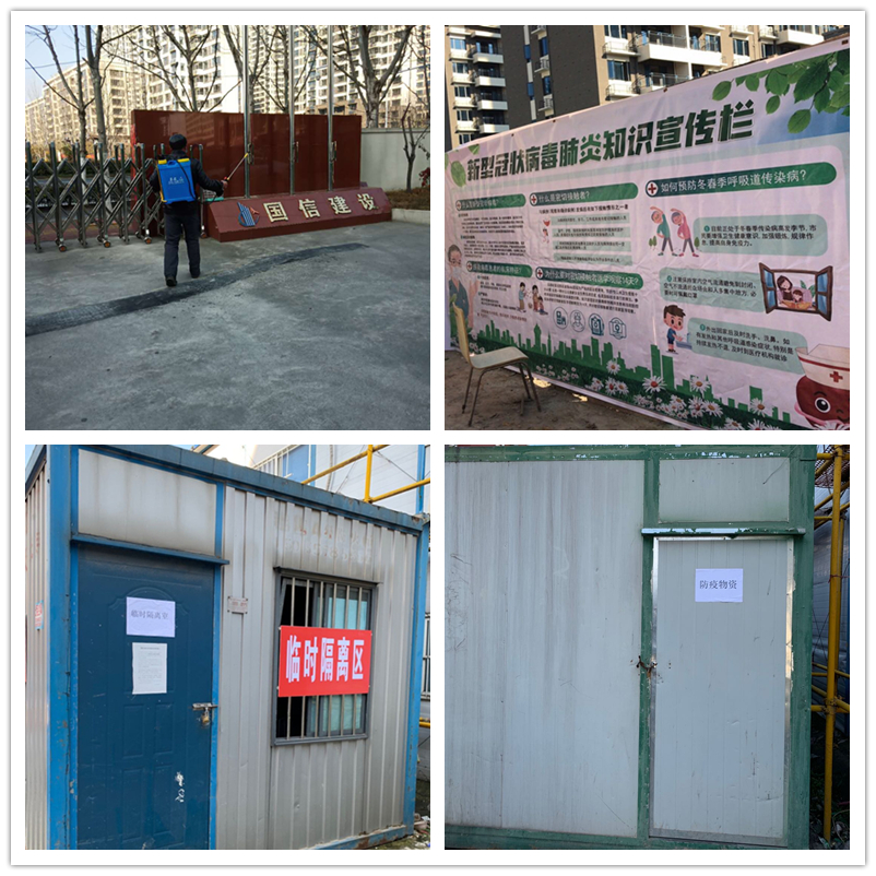 疫情发生以来,国信建设集团要求各项目部严格贯彻落实属地城乡建设主管部门关于开工复工的有关规定要求,不得擅自开工复工,并要求值守人员积极做好疫情防控工作,每日上报自身健康情况,禁止无关人员出入,并对工地办公区、生活区等区域进行全面消毒。